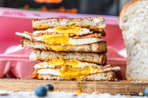 SCRAMBLED EGGS, MOZZARELLA, JALAPEÑO PEPPER JACK AND VERMONT CHEDDAR. GRILLED TO PERFECTION.